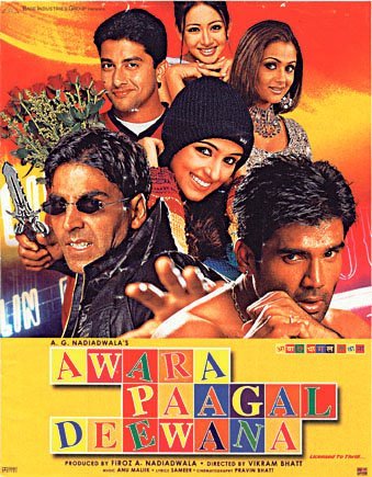 Awara Paagal Deewana is a 2002 Bollywood action comedy directed by Vikram Bhatt. The film's music was composed by Anu Malik, and the lyrics by Sameer. It was a success at the box office.